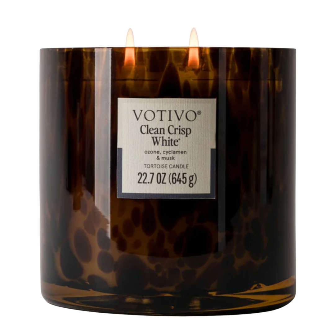 Clean Crisp White Candle In Tortoise Shell Glass Holder