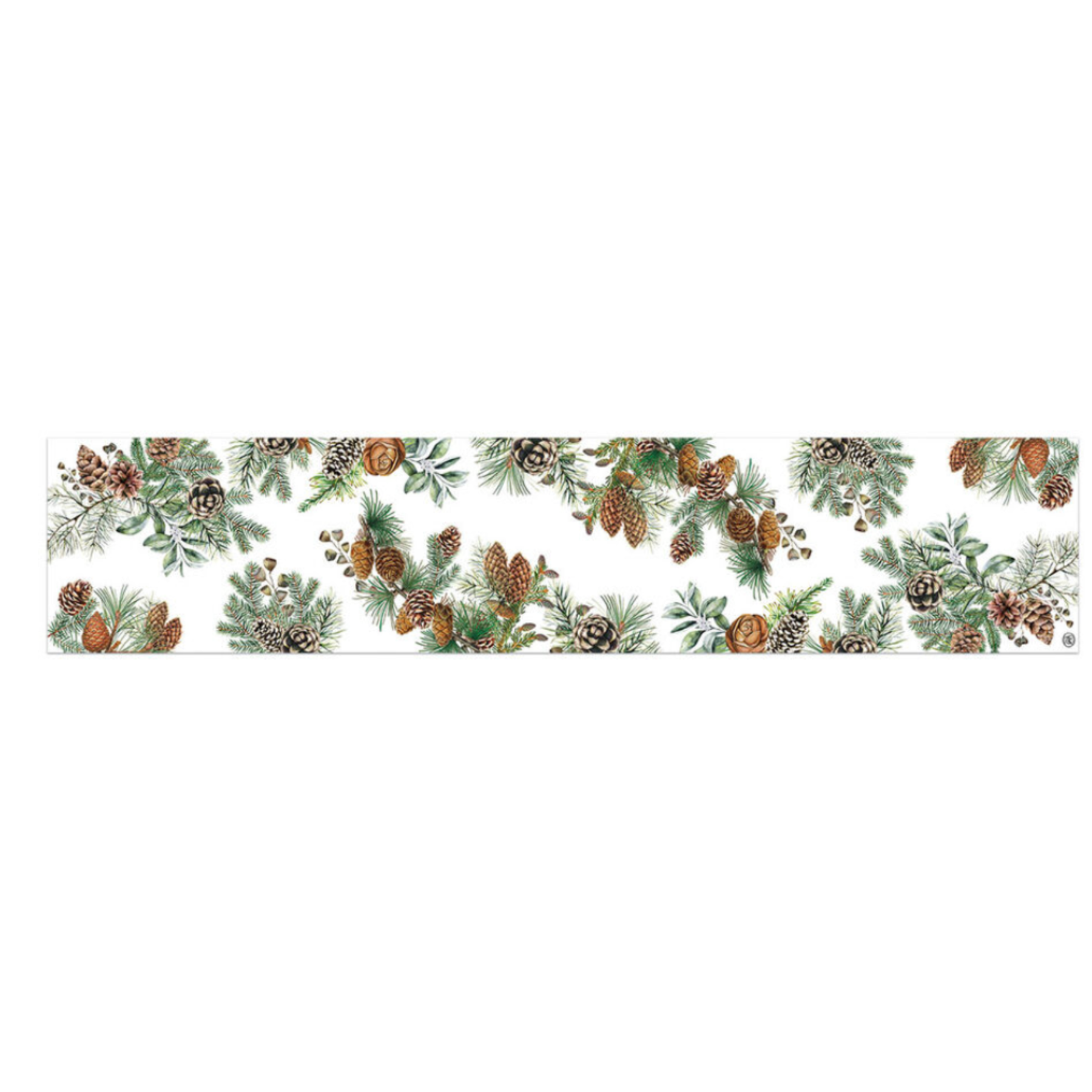 Lush evergreens and pretty pine cones capture winter’s ethereal beauty in its purest form.