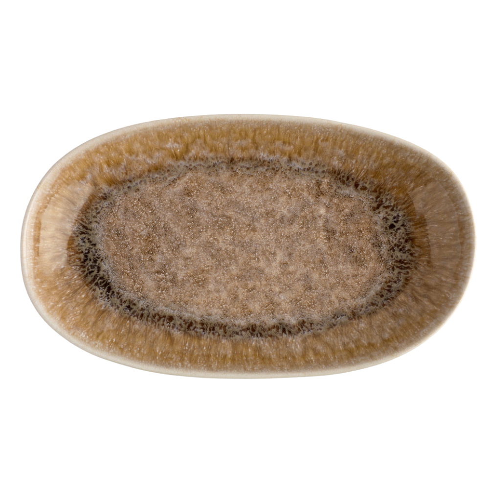 The Point Lobos collection brings stylish appeal to everyday dining. Different shades of brown mix with the white background in endless combinations. The reactive glaze makes each piece unique. The oval centerpiece is a true table focal point. Made of durable stoneware.