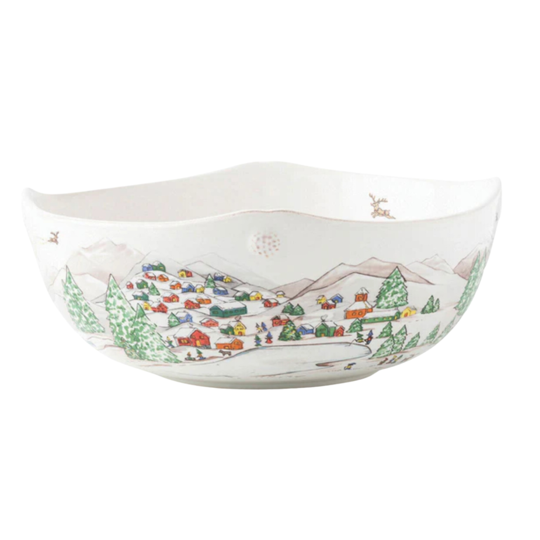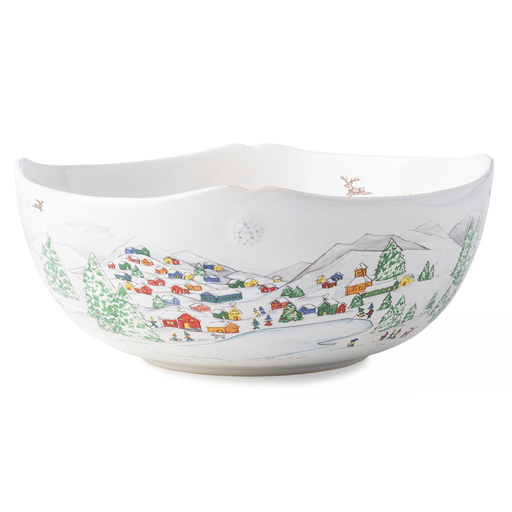 The mythical, folkloric world of the North Pole is hand illustrated atop iconic Berry & Thread shapes in this new holiday collection. Find the reindeer barn and Santa’s cottage depicted on this Hostess Tray, perfect for appetizers or sweets all throughout the holidays!