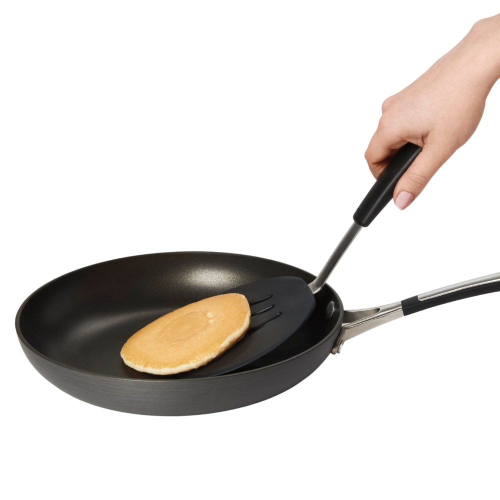 Turners have a silicone outer layer that is bonded to a flexible stainless steel core for added stability. The thin, flexible edges glide easily beneath foods and are perfect for fragile foods to keep them intact.