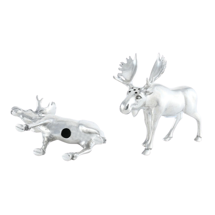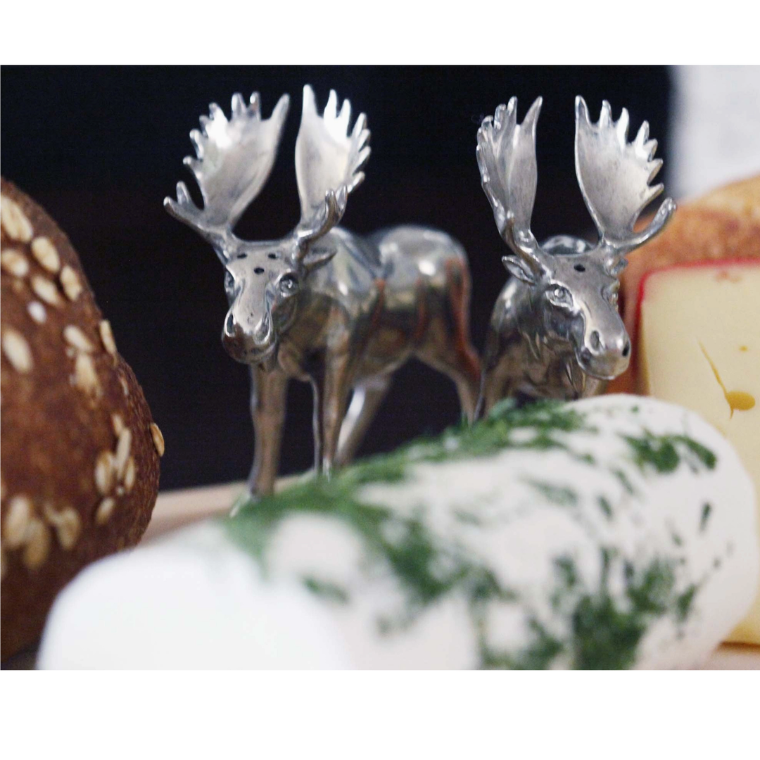 If you're looking for a rustic addition to your kitchen or dining room, consider the Vagabond House Moose salt and pepper set. This luxurious set is crafted from premium pewter and features two moose walking along your table. The smooth body of each creature accentuates their distinct antlers and defined hooves.