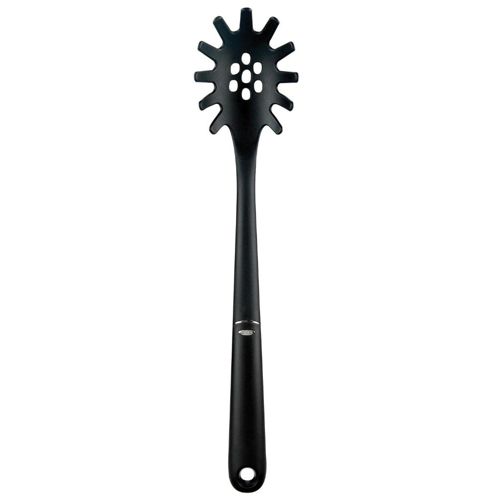 The Nylon Spaghetti Server lifts, portions and serves spaghetti, linguini and angel hair pasta with ease. Our nylon tools are a cut above, featuring oversized heads, extra-long, sturdy necks and comfortable grips. Heads are heat-resistant up to 400°F and won't scratch non-stick cookware.